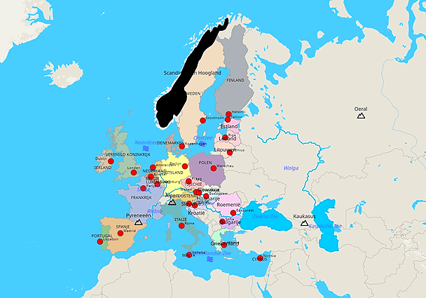 Topografie COLLEGEaar1 - Europa met hoofdsteden