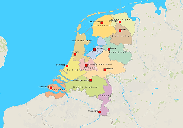 Topografie Verrekijker - Nederland provincies en hoofdsteden