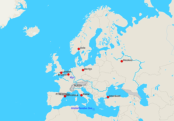Topografie Europa plaatsen wateren en gebieden toetskaart