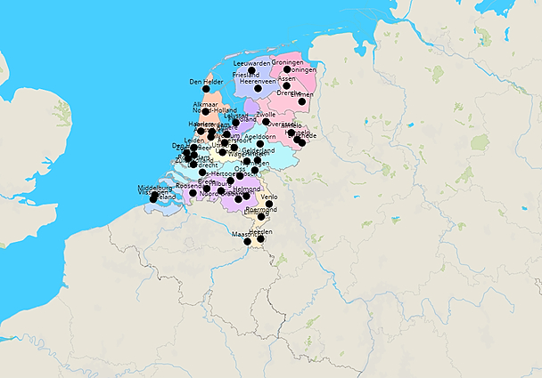 Kleine kaart Nederland provincies en steden2 (640x480)