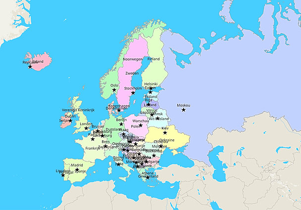 Kleine kaart Europa landen en hoofdsteden klas 2 (640x480)