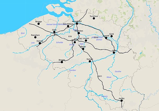 Topografie rivieren en autostrades van België