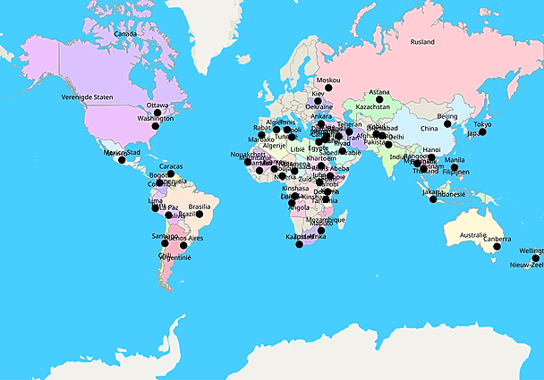 Kleine kaart 3HV wereld landen en hoofdsteden (640x480)