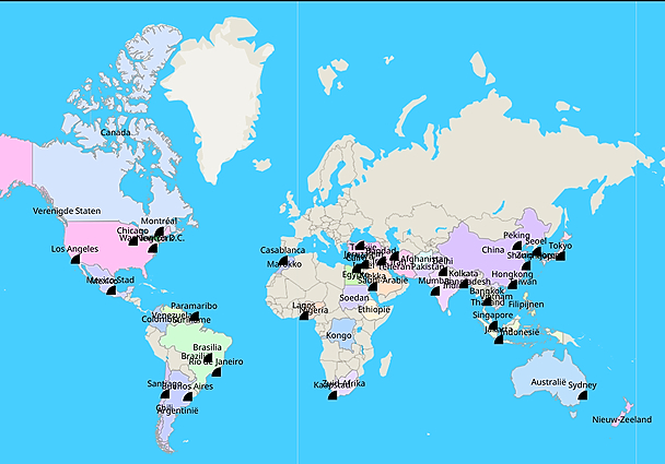 Topografie Wereld landen, steden