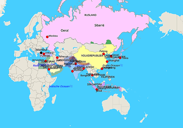 Kleine kaart Landen, steden en water in Azië Janneke (640x480)