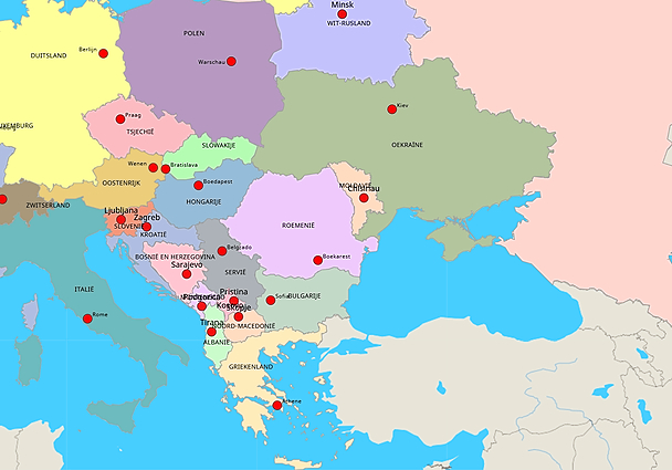 Kleine kaart Europa landen en hoofdsteden (640x480)