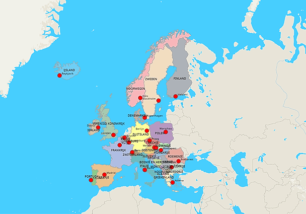 Topografie Landen en hoofdsteden van Europa 1km1