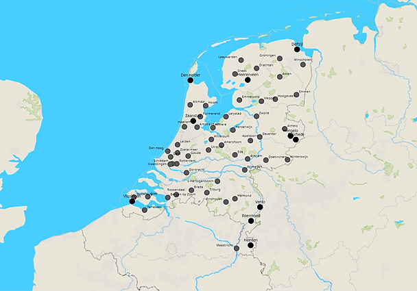 Kleine kaart Kaart Nederland - 60 grote plaatsen (640x480)