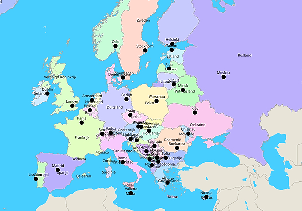 Topografie Europa landen en hoofdsteden