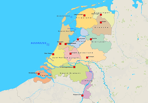 Topografie Provincies, hoofdsteden en wateren van Nederland 1