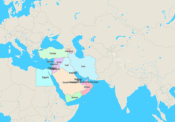 Topografie Landen en oceanen Midden-Oosten