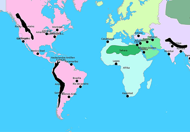Topografie werelddelen gebieden en steden