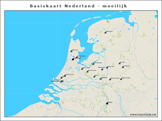 Kleine kaart Basiskaart Nederland - moeilijk (640x480)