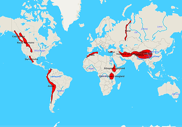 Topografie Gebergten, Plateaus en Rivieren Wereld