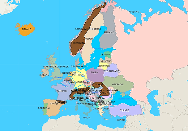 Kleine kaart Referentiekaart Europa zonder steden (640x480)