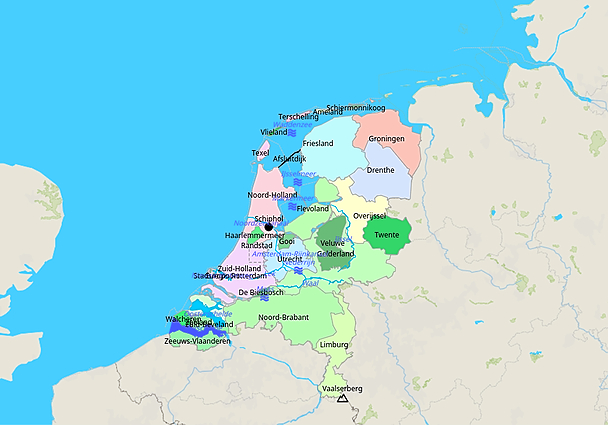 Topografie gebieden en wateren nederland