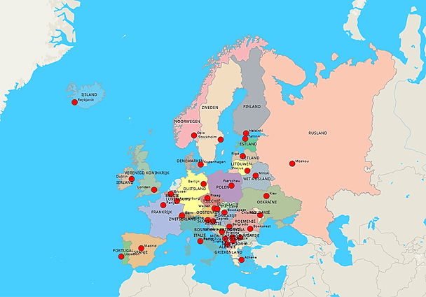 Kleine kaart Landen en hoofdsteden van Europa toets (640x480)