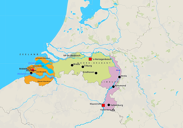 Topografie Zuid Nederland Zeeland, Noord-Brabant, Limburg