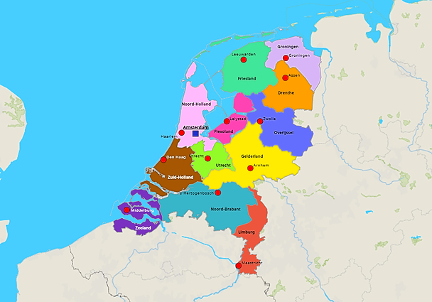 Kleine kaart Provincies en hoofdsteden (640x480)
