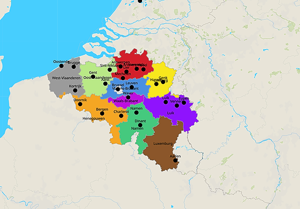 Topografie Provincies, hoofdplaatsen en belangrijke steden