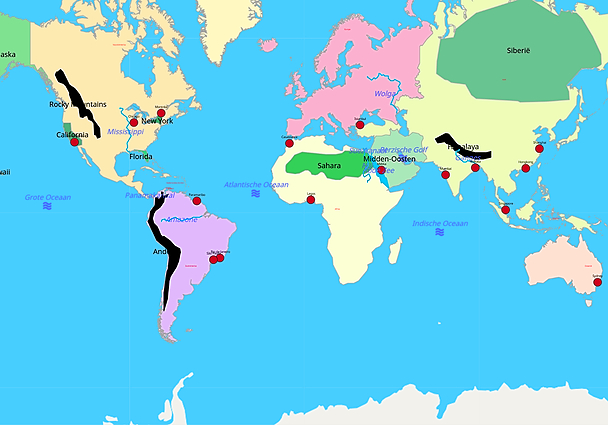Kleine kaart De Wereld (Water, Gebieden en steden) (640x480)