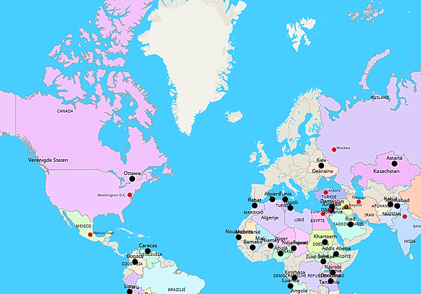 Kleine kaart Topo wereld landen en hoofdsteden (640x480)
