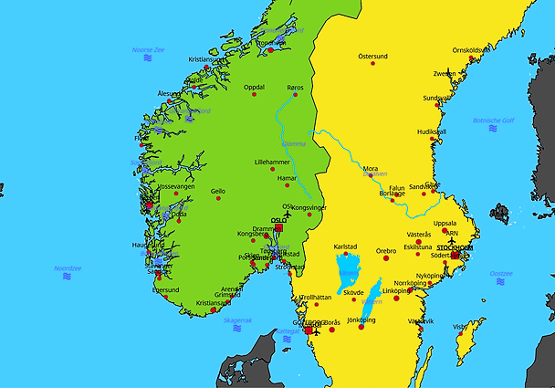 Topografie Noorwegen (Zuid) en Zweden (Midden)