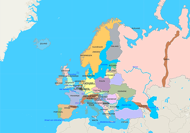 Kleine kaart Europa - Landen, gebieden en wateren (640x480)