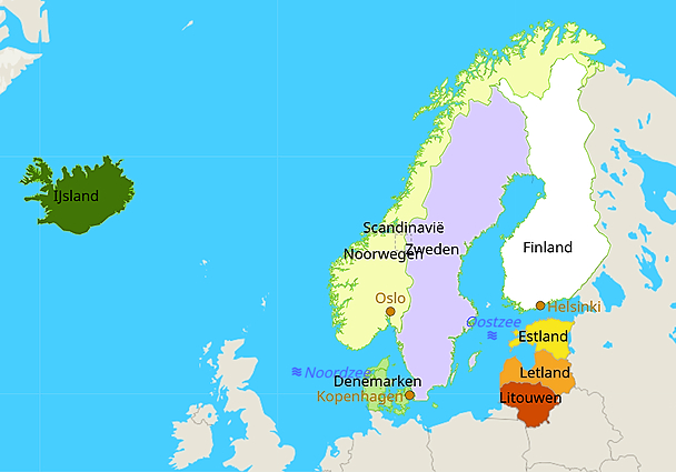 Kleine kaart Landen en steden in Scandinavië (640x480)
