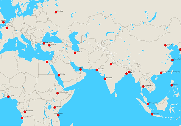 Kleine kaart Wereldkaart - steden GR3 (640x480)