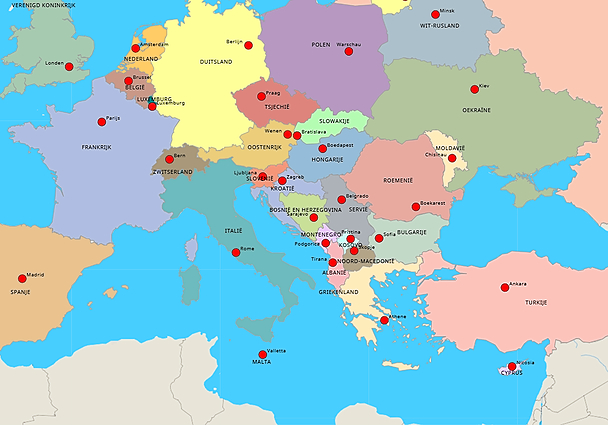 Topografie (Aangepaste) Landen en hoofdsteden van Europa
