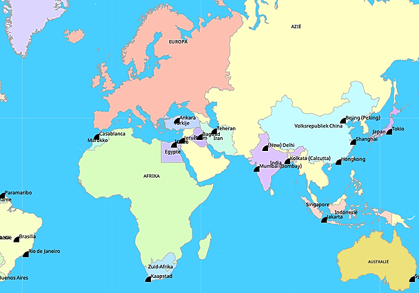 Topografie De wereld 1, 2, 4, bb groep 7 landen, plaatsen