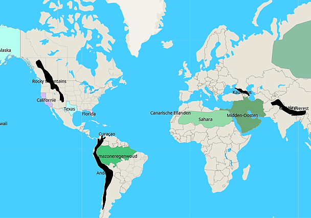 Topografie Gebergten en gebieden, aardrijkskunde leerjaar 3
