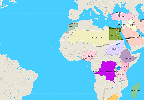 Topografie Afrika en het Midden-Oosten