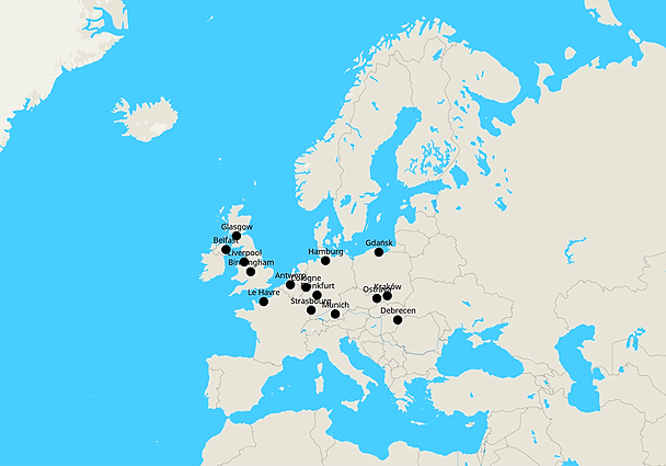 Kleine kaart Europe cities waterways and mountains (640x480)