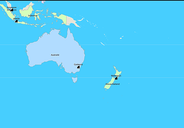 Kleine kaart Azie topo met Nieuw-Zeeland en Australië (640x480)