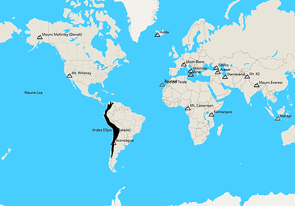 Topografie Bergen en vulkanen van de wereld