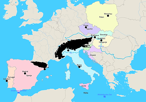 Topografie Europa kaart D