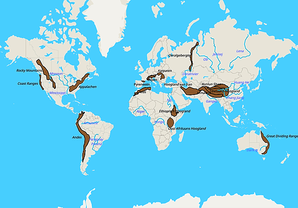Geography Wereld reliëf op kaart CLAST - AAR3