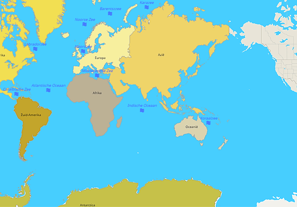 Small map De 7 continenten, zeeën en oceanen (640x480)