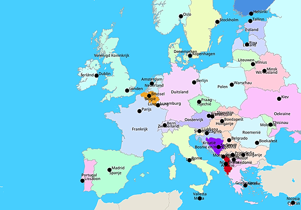 Small map Alle landen en hoofdsteden van Europa (640x480)