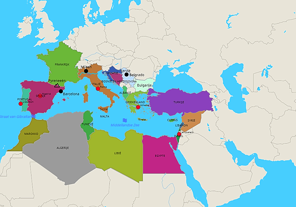 Small map Middellandse zee landen en hoofdsteden (640x480)