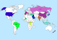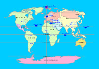 HHC overzichtsoefening op de wereldkaart Oefen je kennis over de ligging van enkele grote landen op een wereldkaart |