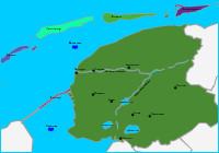 8 Friesland A. Dokkum B. Leeuwarden C. Franeker D. Harlingen E. Van Harinxmakanaal F. Waddenzee G. Bolsward H. Sneek I. Joure J. Heerenveen K. Wolvega L. Drachten M. Lemmer N. Stavoren O. IJsselmeer P. Afsluitdijk Q. Prinses Margrietkanaal R. Vlieland S. Terschelling T. Ameland U. Schiermonnikoog |