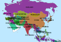 Azie topo 2e jaar landen en steden Oefenkaart voor de landen en steden in Azie. |