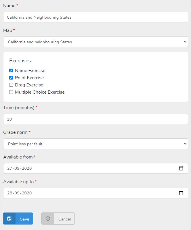 Exams have a direct relation with maps. An exam is connected with one of your maps. If you want to create several exams for the same map, you have to make a copy of that map and create a new exam on the copy.