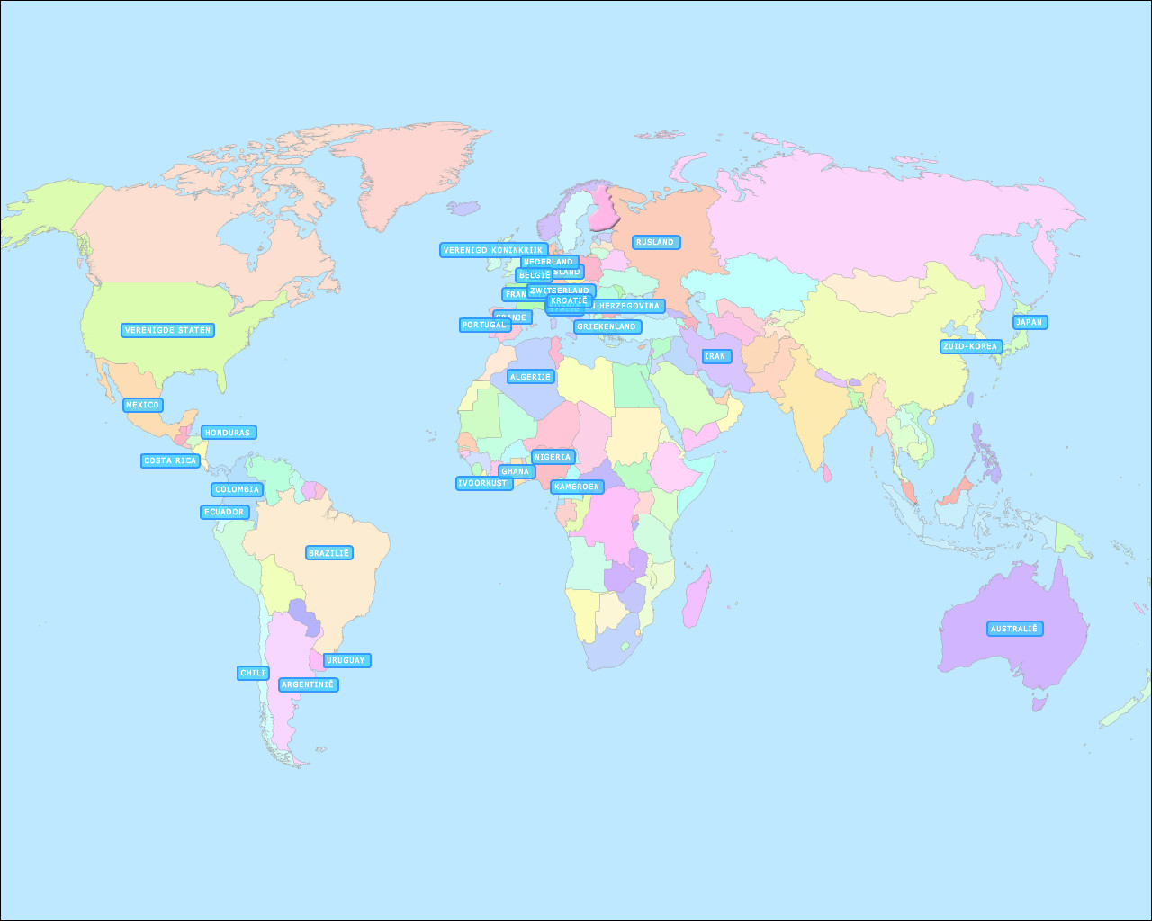 Kleine kaart WK Voetbal 2014 Landen (640x480)