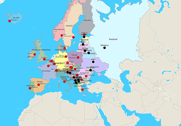Kleine kaart Europa - 39 landen met hoofdsteden (640x480)