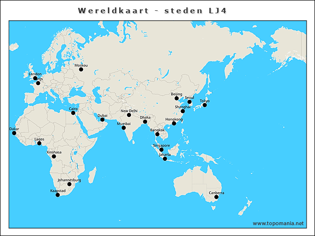 Kleine kaart Wereldkaart - steden LJ4 (640x480)
