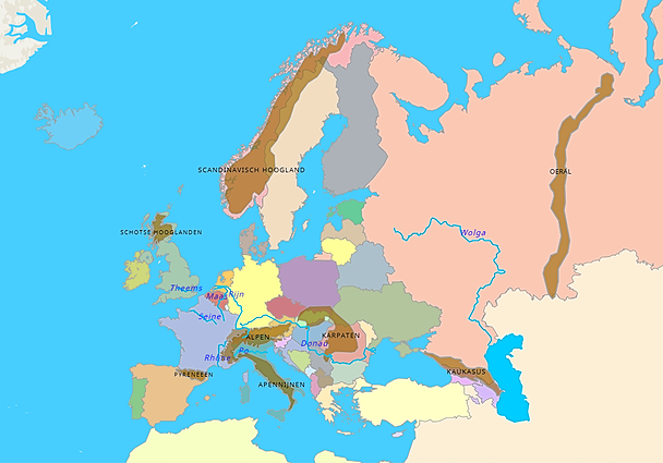 Kleine kaart Gebergten en Rivieren van Europa (640x480)